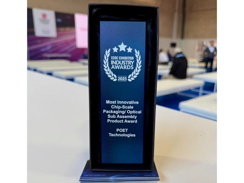 POET Technologies Wins ‘Most Innovative’ Award at ECOC 2025September 30 - Financial Post |